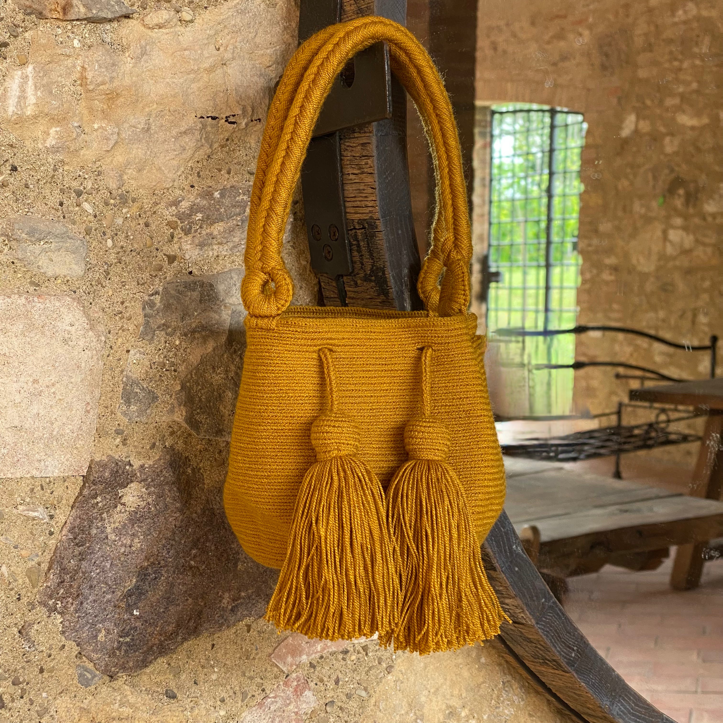 Ogni borsa è un pezzo unico, realizzato a mano con la tecnica dell’uncinetto a filo singolo dalle artigiane Wayuu.